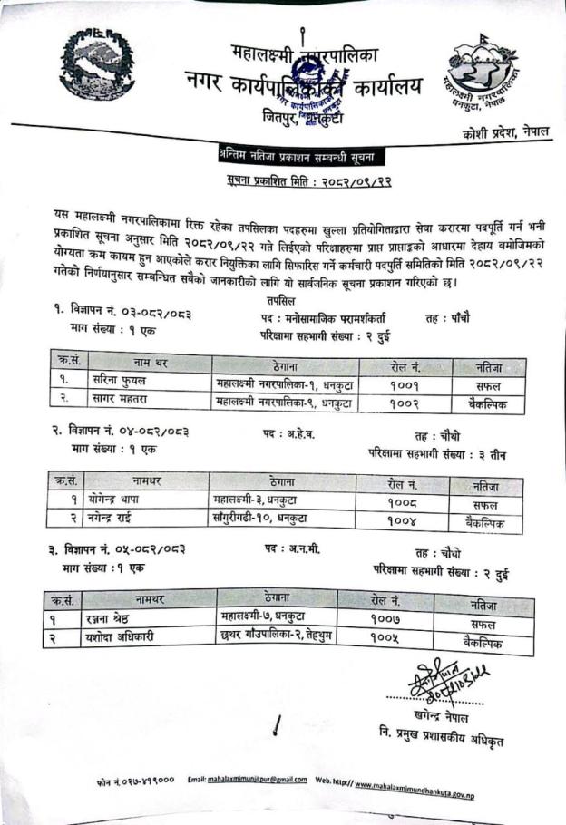 अन्तिम नतिजा प्रकाशन सम्बन्धी सूचना |