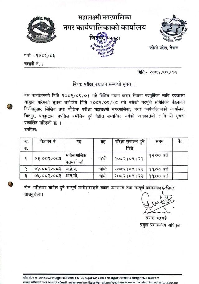 परीक्षा सञ्चालन सम्बन्धी सूचना ।
