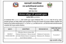 बोलपत्र स्वीकृत गर्न आशयको सुचना ।